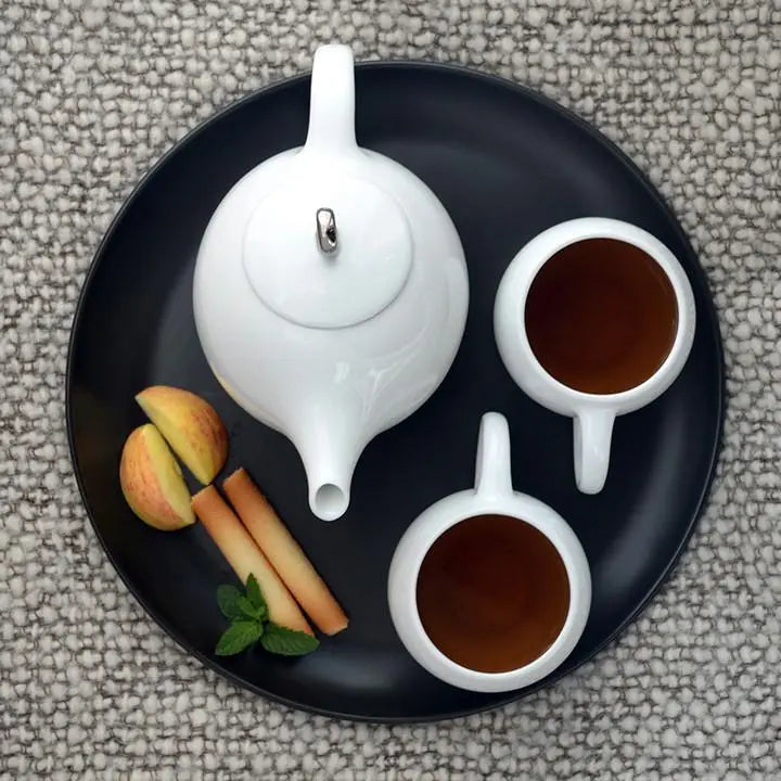 Inspired by the ceramics of Eva Zeisel, the EVA teaset embodies her design philosophy of attracting the hand as well as the eye. Simple, elegant and delightful to handle, the Eva teaset won the 2014 Golden A’ Design Award for Tableware. Available in glossy white porcelain with silver plating, or a black matte stoneware. 3-piece set includes teapot + 2 teacups.